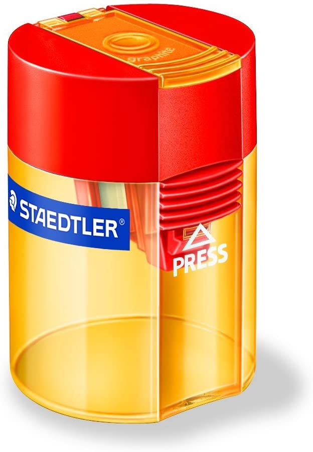 Taille-crayon en plastique, récipient transparent, avec taille-crayon en métal de haute qualité, pour crayons jusqu’à 8,2 mm Ø, couvercle transparent avec fermeture à pression. Disponible en 4 combinaisons de couleurs attrayantes : rouge/jaune, bleu/rouge, jaune/vert et bleu/vert. 1 trou.